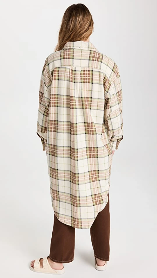 Light-colored flannel composes this extra-long Free People plaid shirt jacket, a throw-on-and-go layer for fall that’s sure to become one of your new favorites.