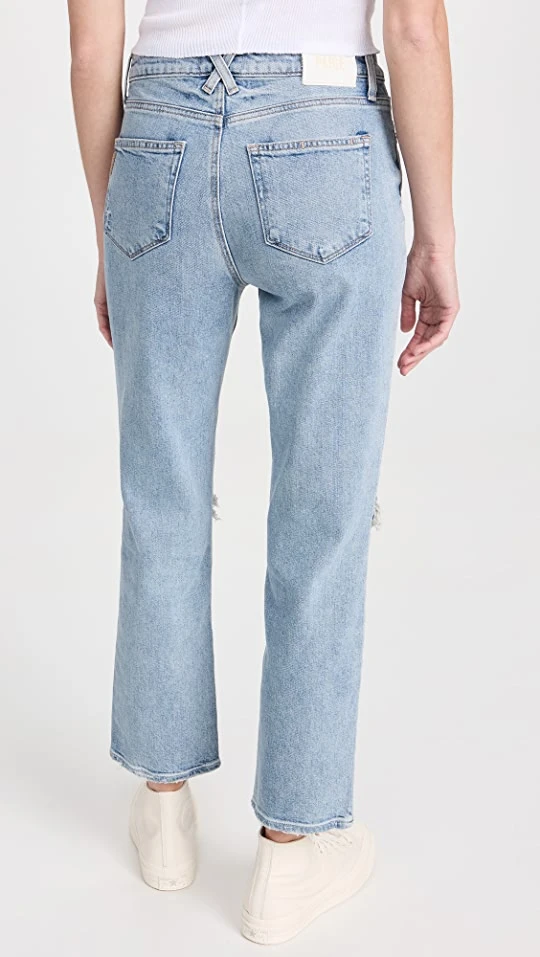 - High-rise and straight-leg cut