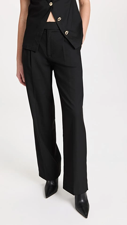 - Hook-and-eye closures at waist, zip fly