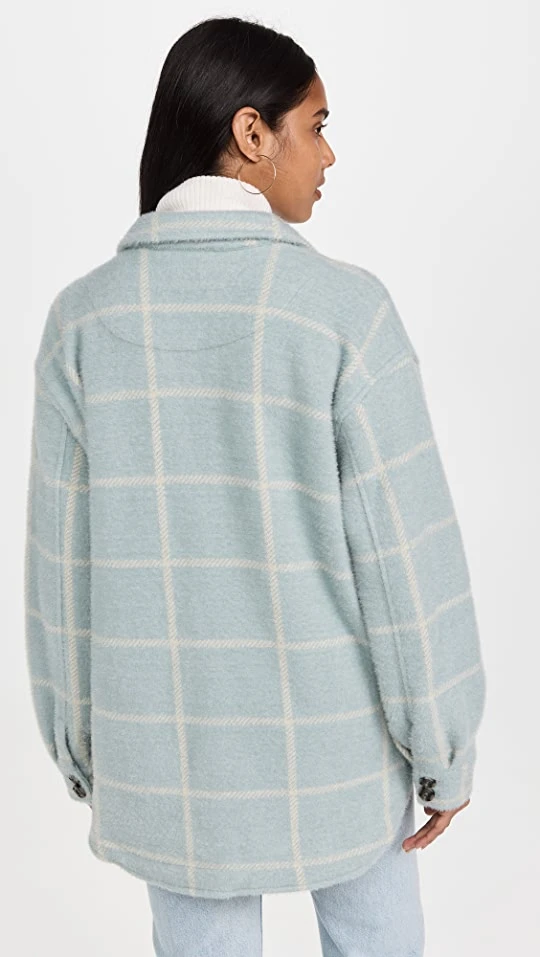A sweeter take on classic plaid, fresh from Z Supply. This shirt jacket features a comfortably oversized silhouette, as well as a lovely light-blue color scheme. Go with tonal denim to keep your look coordinated, and accessorize with hoop earrings.
