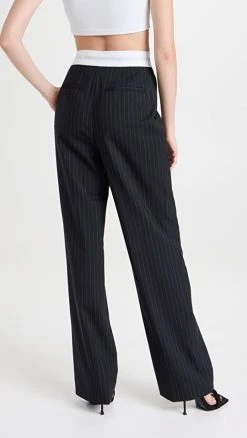Cheapest ???? Alexander Wang Full Length Wide Leg Pants With Crystal Thong Detail Black ????