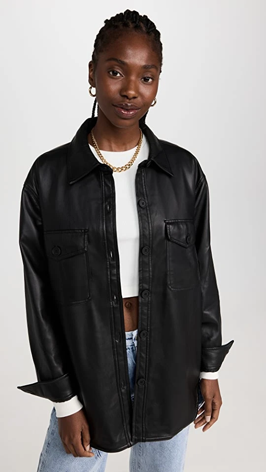 Top 10 ???? Good American Better Than Leather Shacket Black001 ????