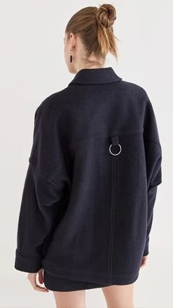 Best deal ⭐ Tibi Boiled Wool Western ???? Shirt Jacket Midnight Navy ✔️